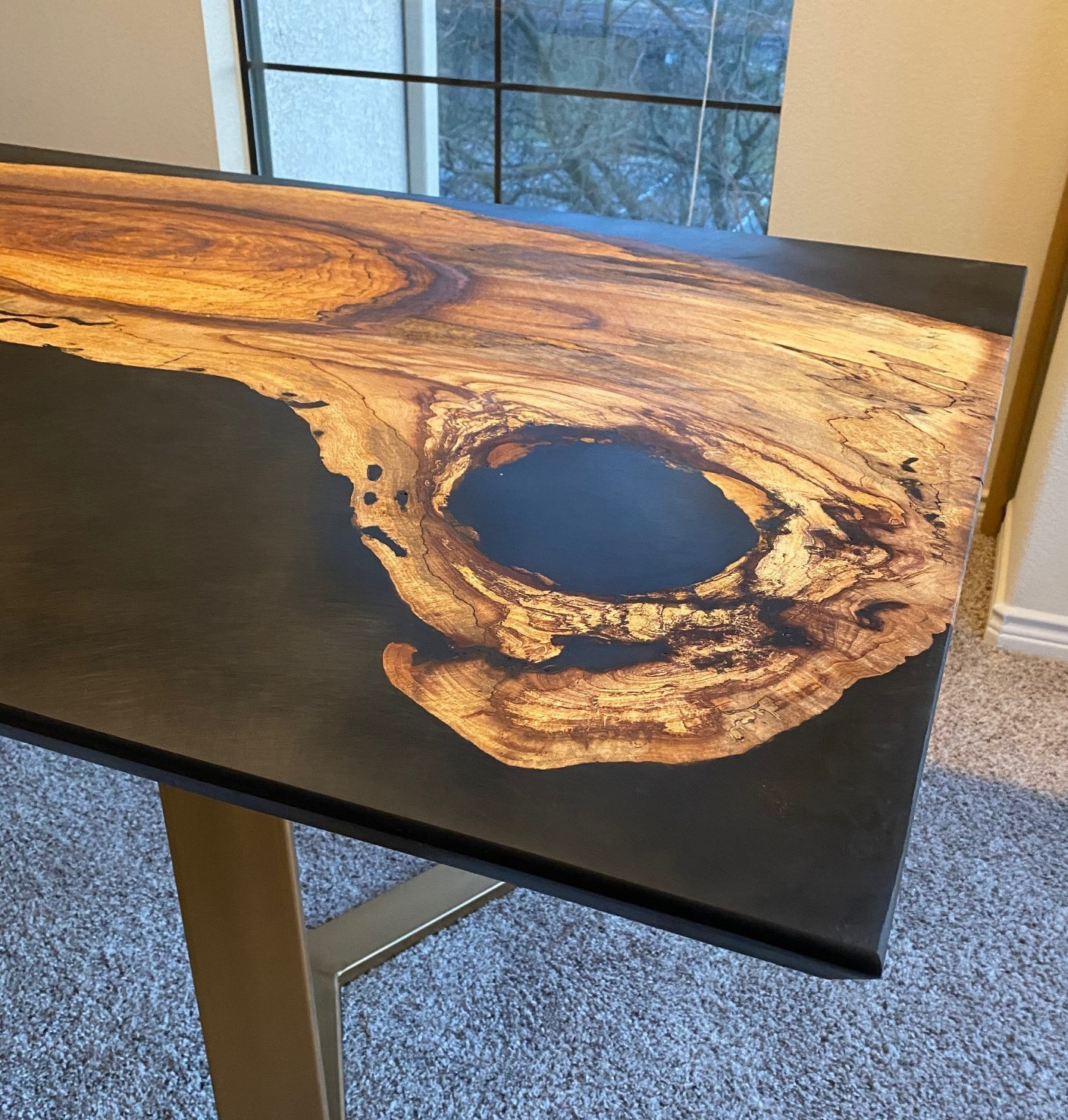 Pecan river table made with beveled edges and finished with pure Rubio monocoat.