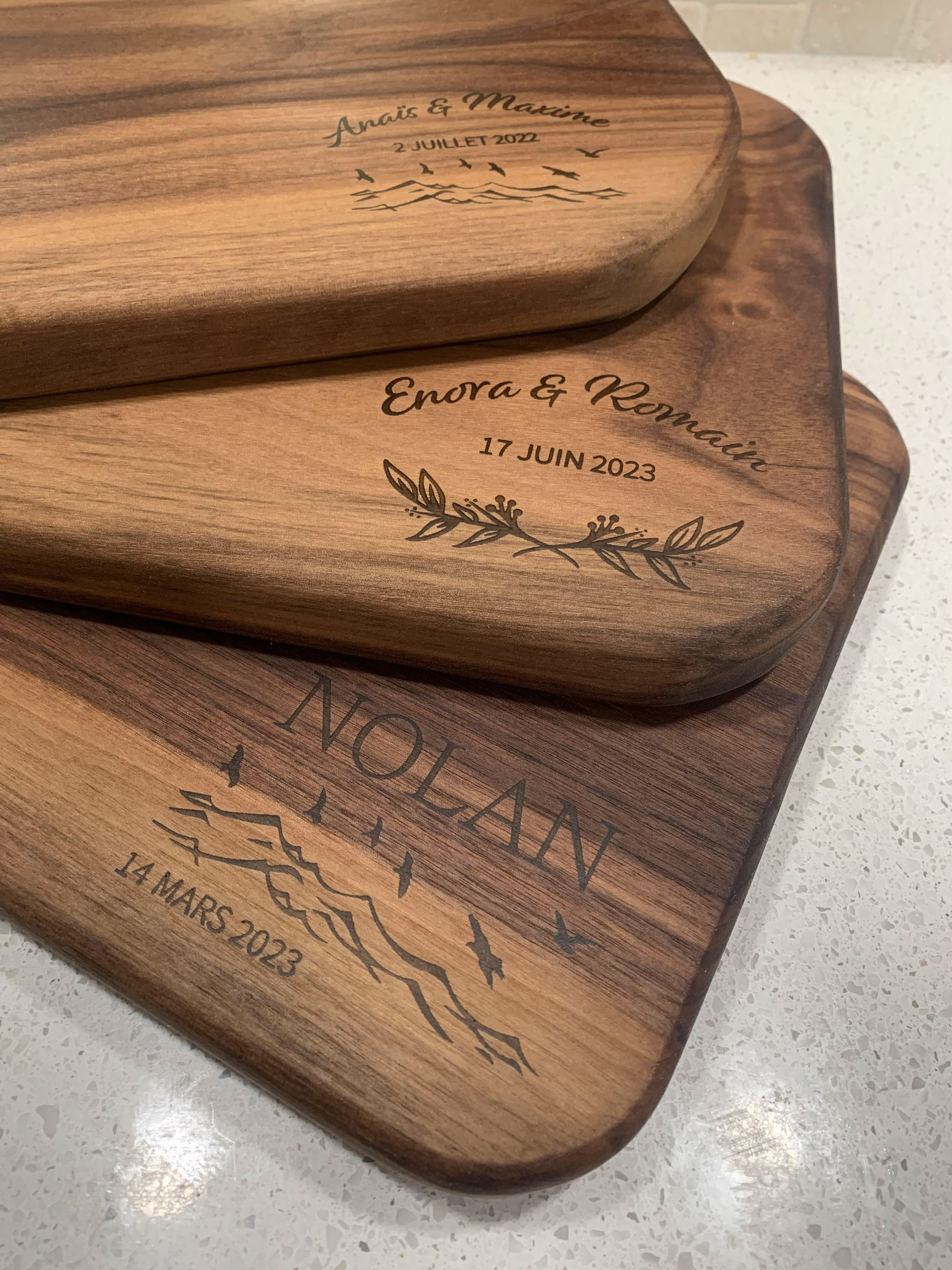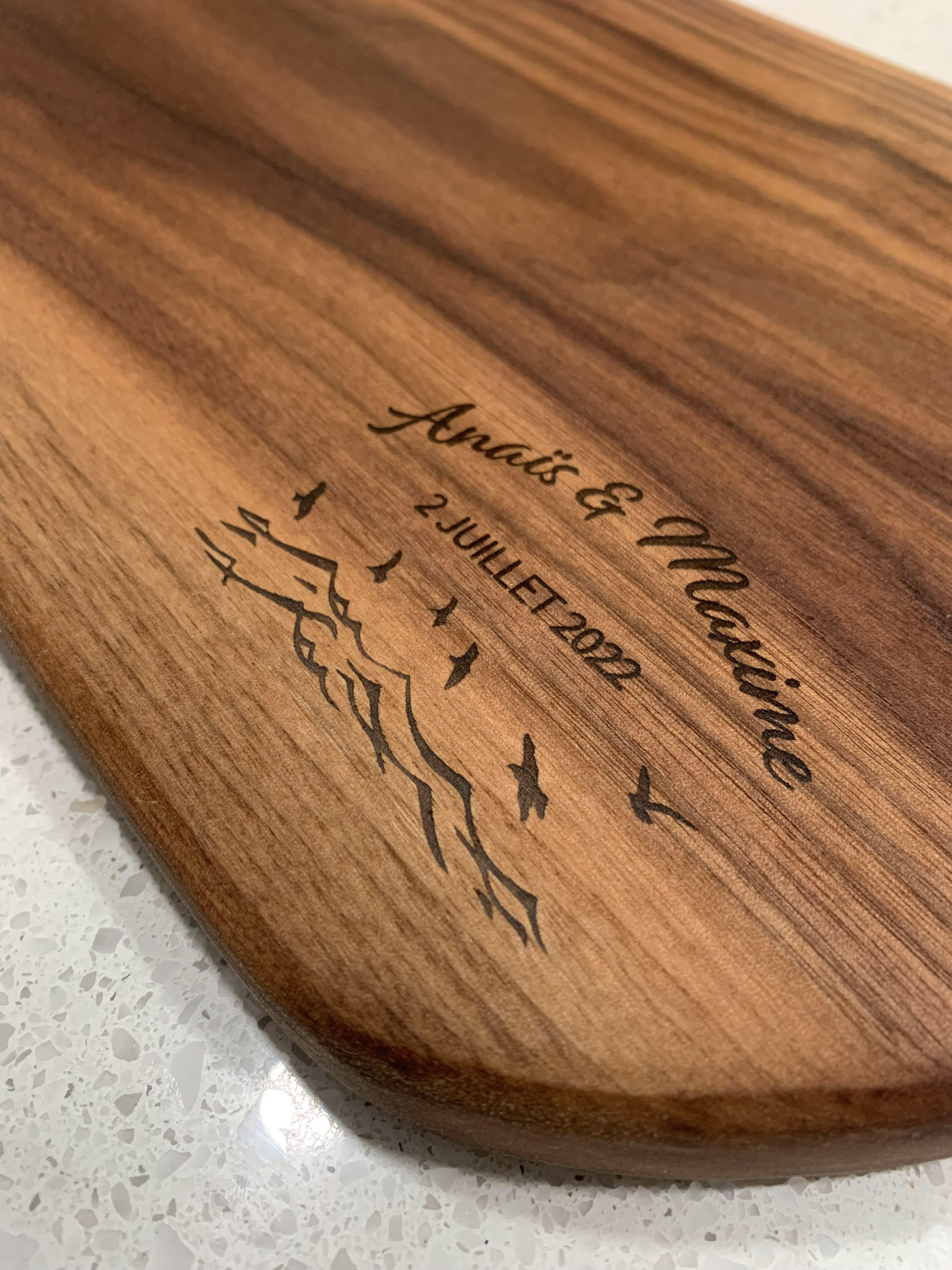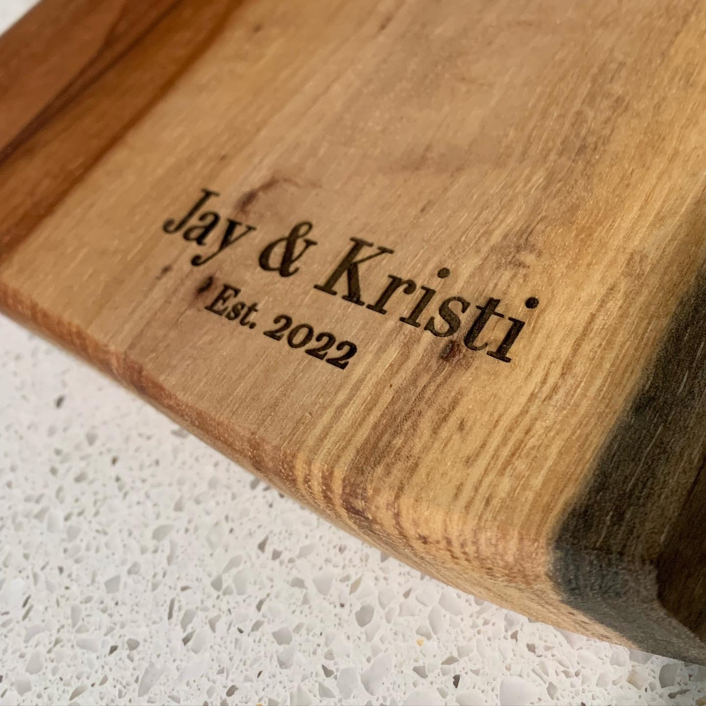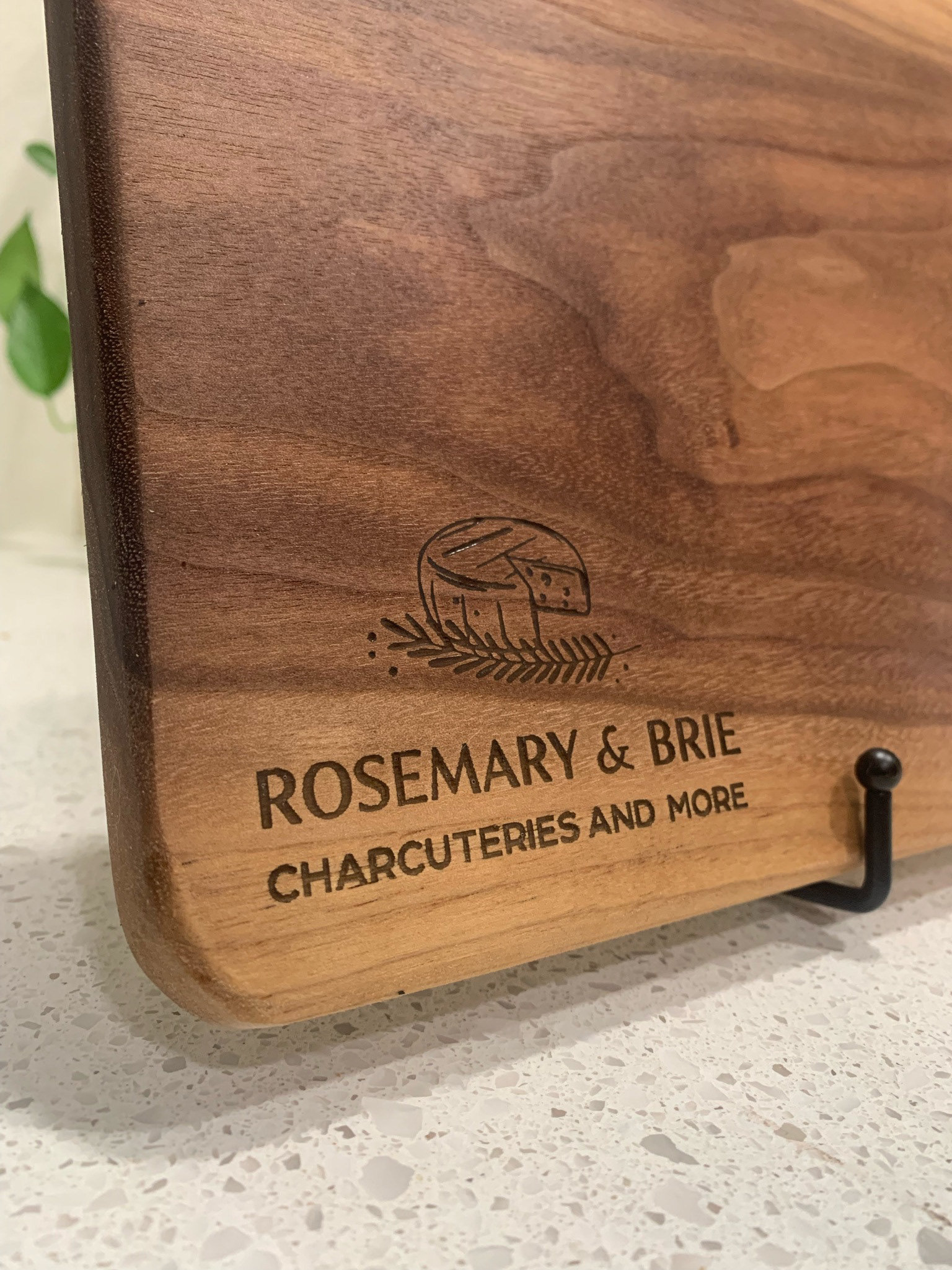 We are able to engrave personal messages, designs, or logos on any of our straight edge charcuterie boards.