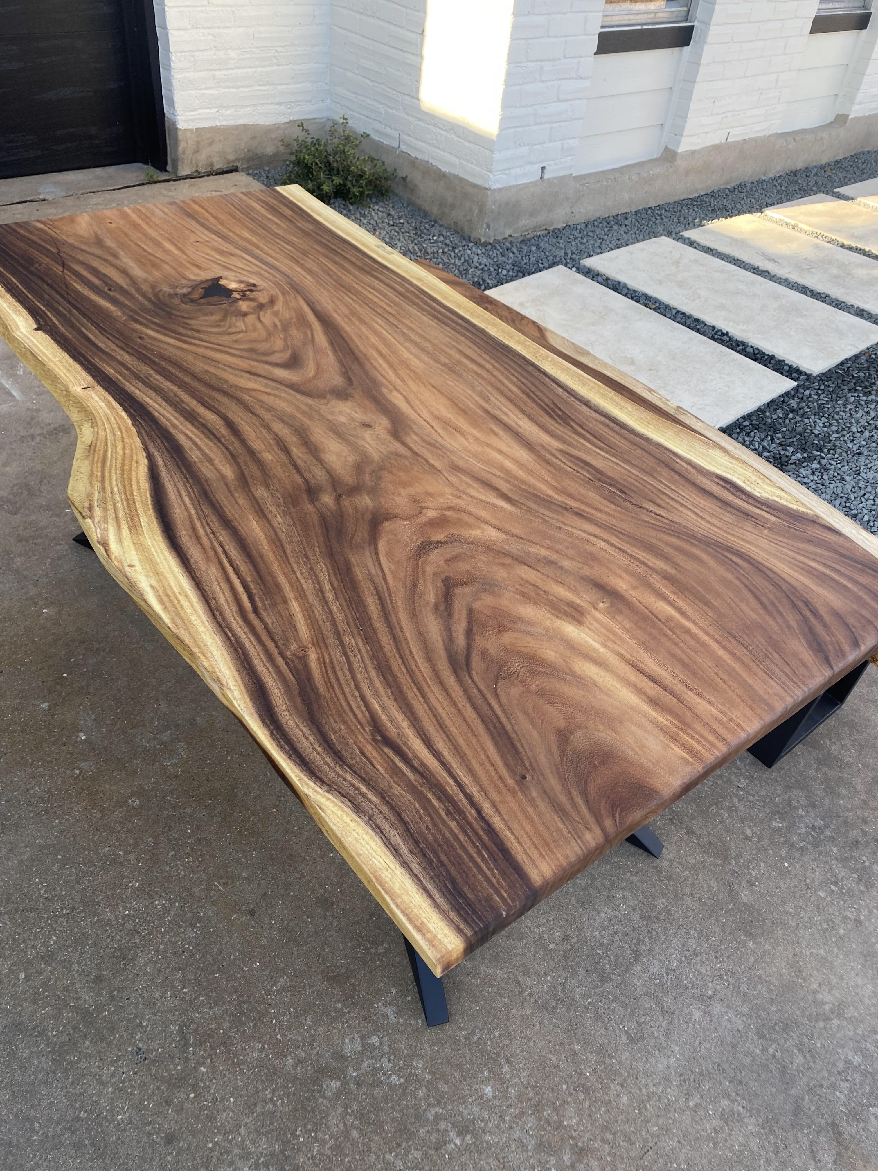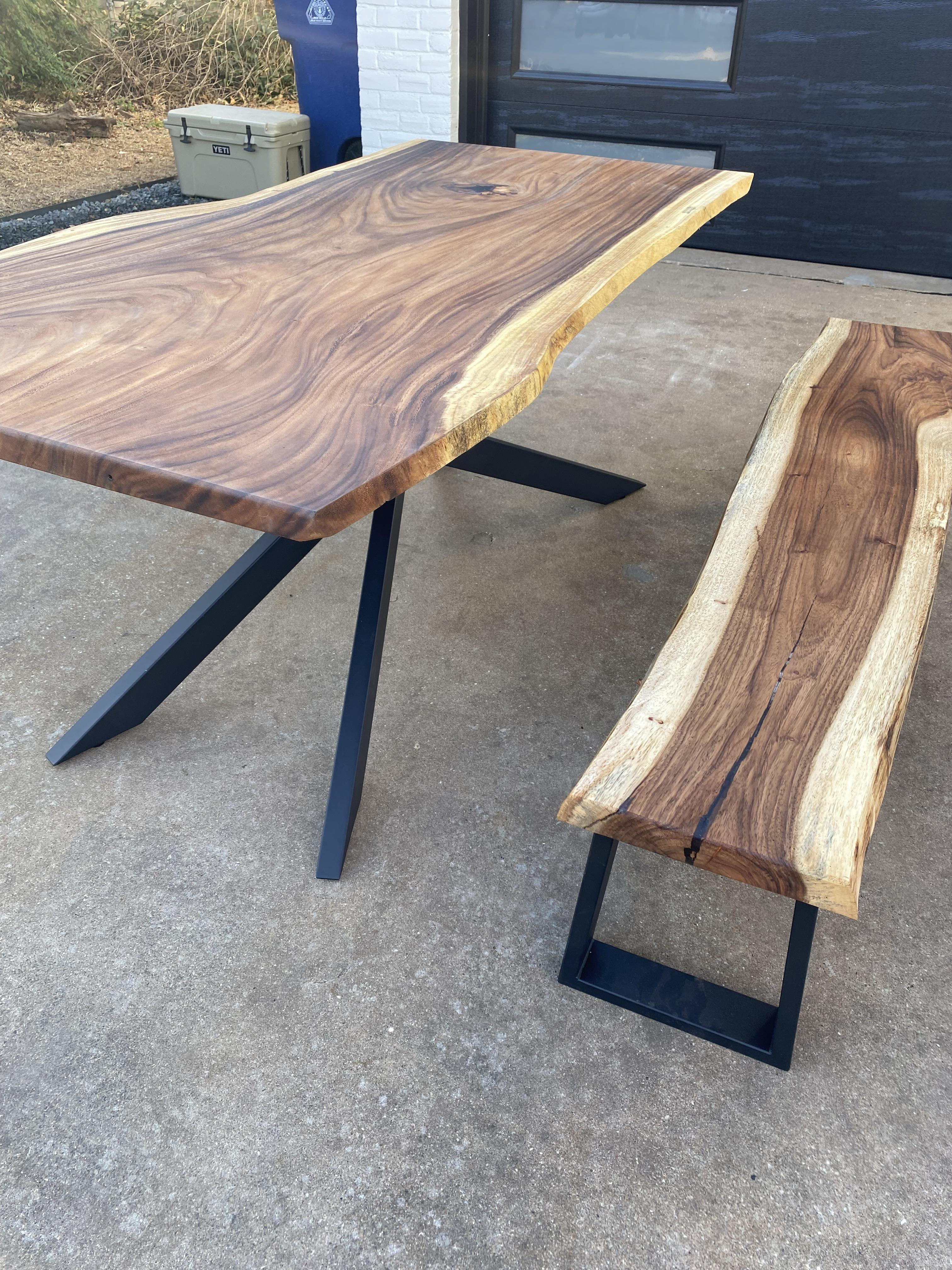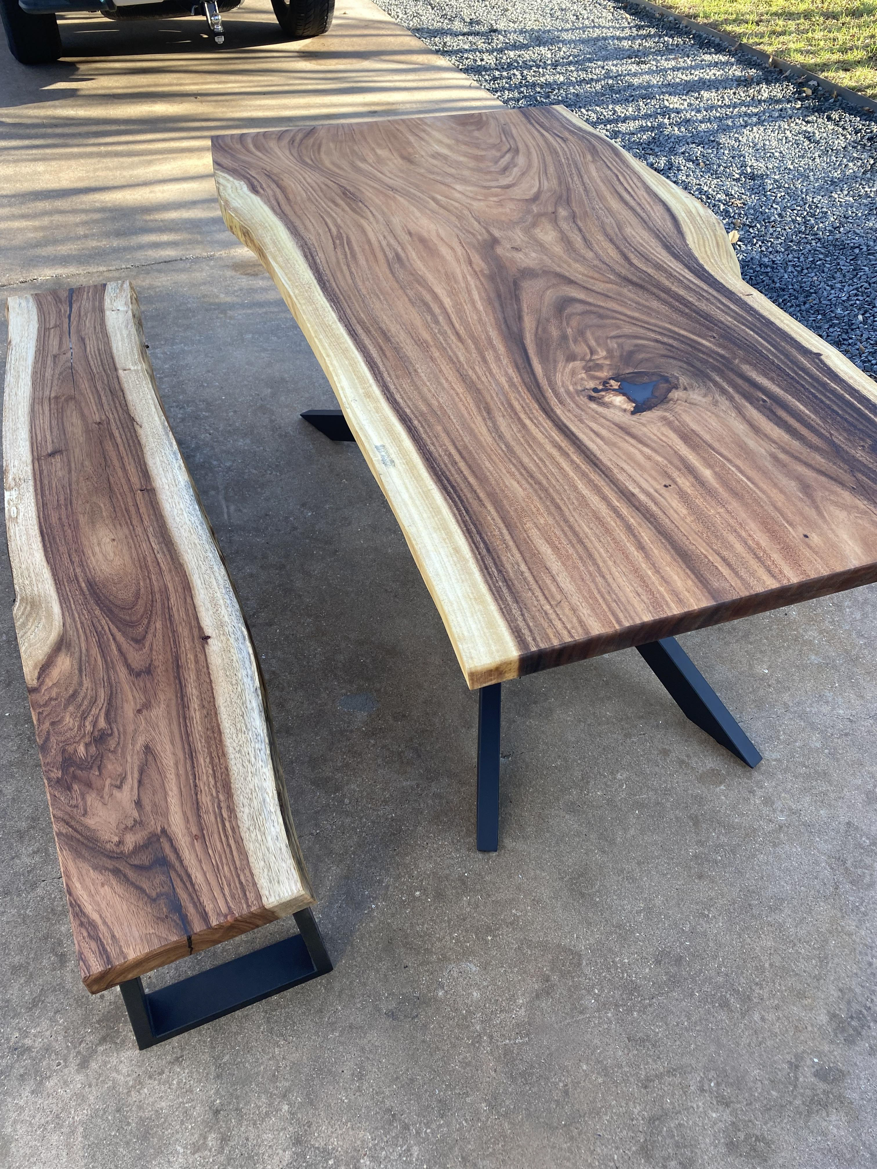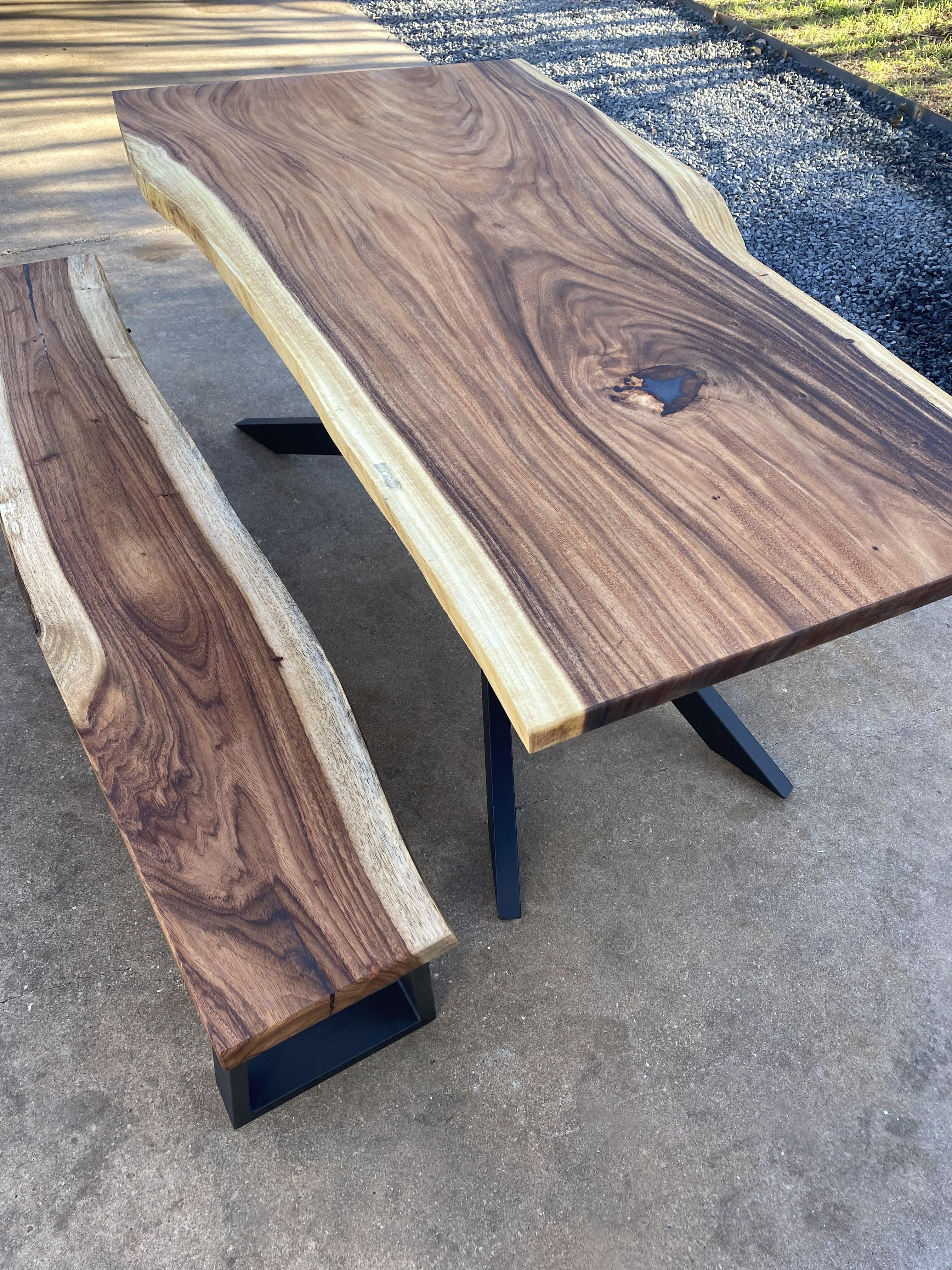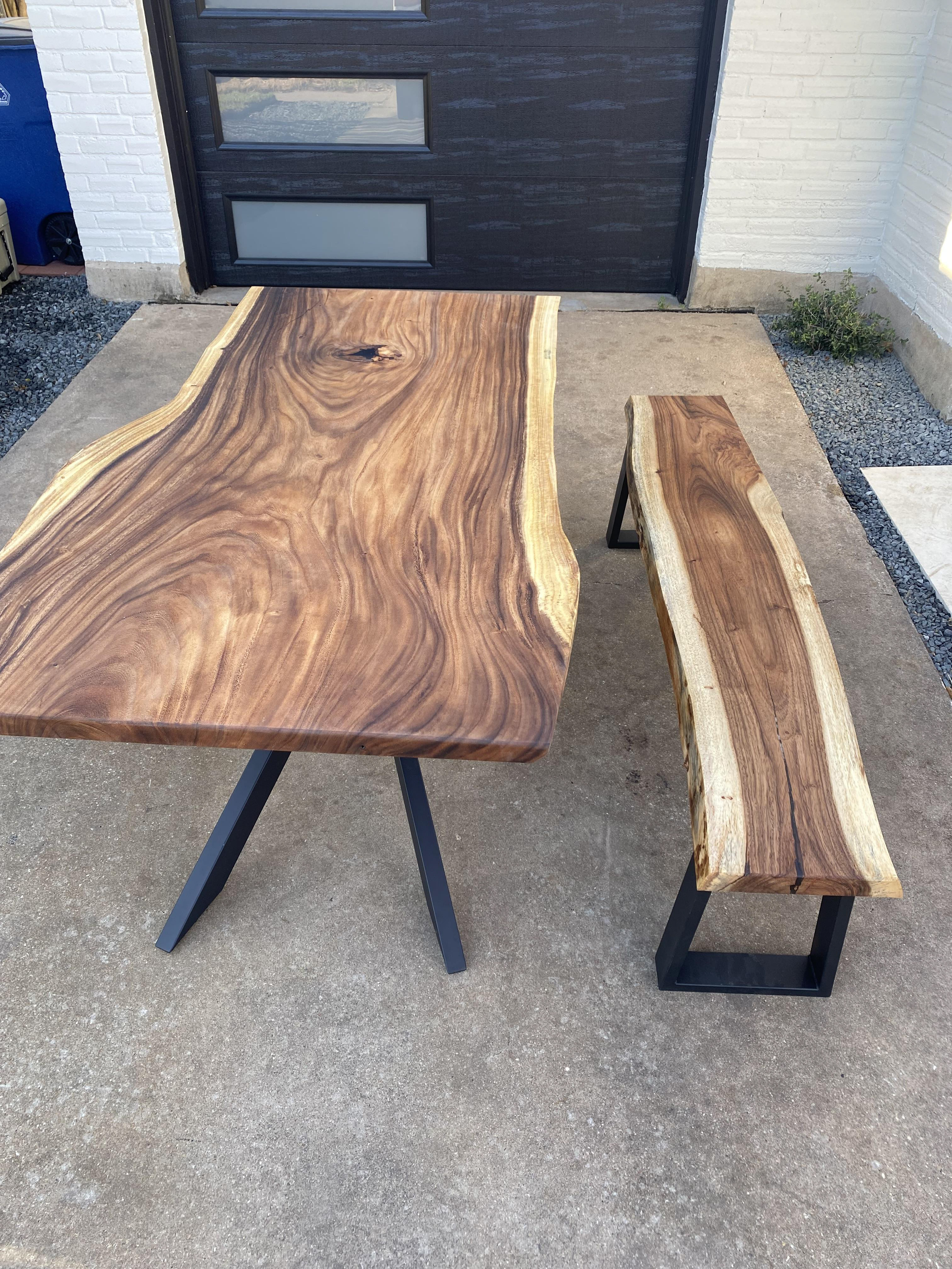 Live edge monkeypod table and bench finished with Rubio Monocoat